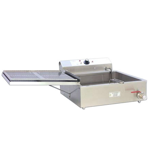 Фритюрница изготовлена из шлифованной нержавеющей стали. Крышка фритюрницы является одновременно рабочей дренажной полкой, на которую ставится сетка с обжаренным продуктом для стекания масла обратно в емкость фритюрницы.