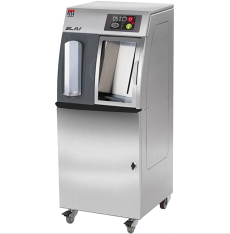 ХлеборезSLIM PRO (нерж)торговой маркиJAC(Франция) — это аппарат автоматической нарезки с режущим диском и возможностью регулировки толщины и количества ломтиков на выходе. Она обеспечивает 110-130 ломтей в минуту.