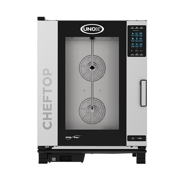 Пароконвектомат UNOX XEVC-1011-GPR серии ChefTop MIND.Maps предназначен для приготовления различных блюд, выпечки хлебобулочных и кондитерских изделий на предприятиях общественного питания и торговли, в пекарнях и кондитерских. Модель оснащена подсветкой посредством внешней LED-лампы и C-образными с зубчатыми нишами направляющими. Внутреннее открывающееся стекло облегчают чистку и обеспечивают максимальную гигиену. Камера с закругленными углами выполнена из нержавеющей стали AISI 304, направляющие — из профилированной стали, дверной замок — из высокопрочного самосмазывающегося технополимера, внутренний штифт дверной ручки — из углеродного волокна.