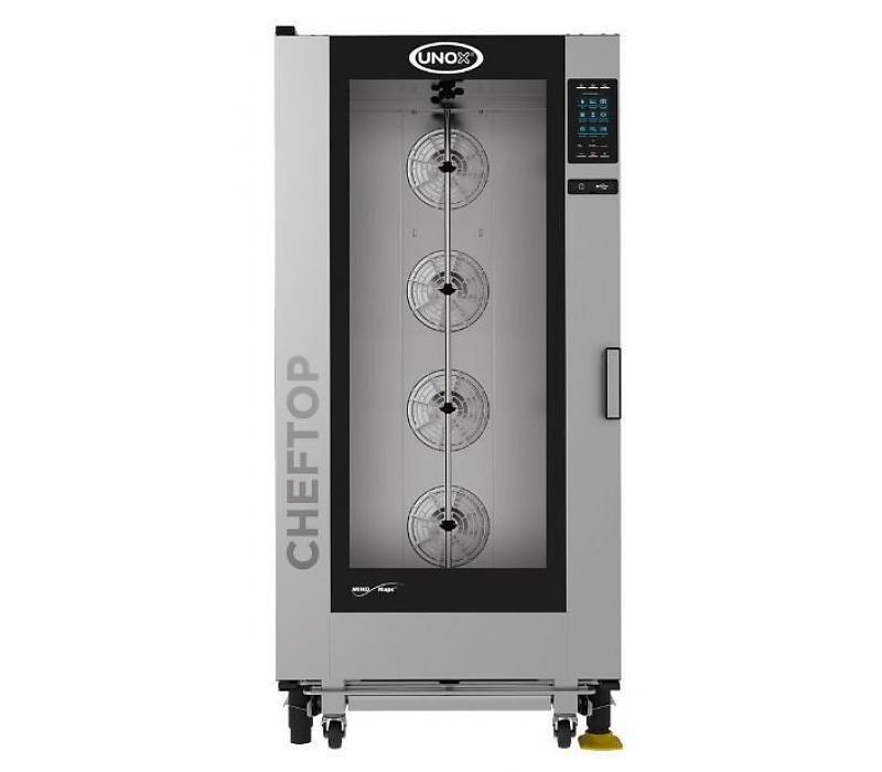 Пароконвектомат UNOX XEVC-2021-GPR серии ChefTop MIND.Maps предназначен для приготовления различных блюд, выпечки хлебобулочных и кондитерских изделий на предприятиях общественного питания и торговли, в пекарнях и кондитерских. Модель оснащена подсветкой посредством внешней LED-лампы и C-образными с зубчатыми нишами направляющими. Внутреннее открывающееся стекло облегчают чистку и обеспечивают максимальную гигиену. Камера с закругленными углами выполнена из нержавеющей стали AISI 304, направляющие — из профилированной стали, дверной замок — из высокопрочного самосмазывающегося технополимера, внутренний штифт дверной ручки — из углеродного волокна.