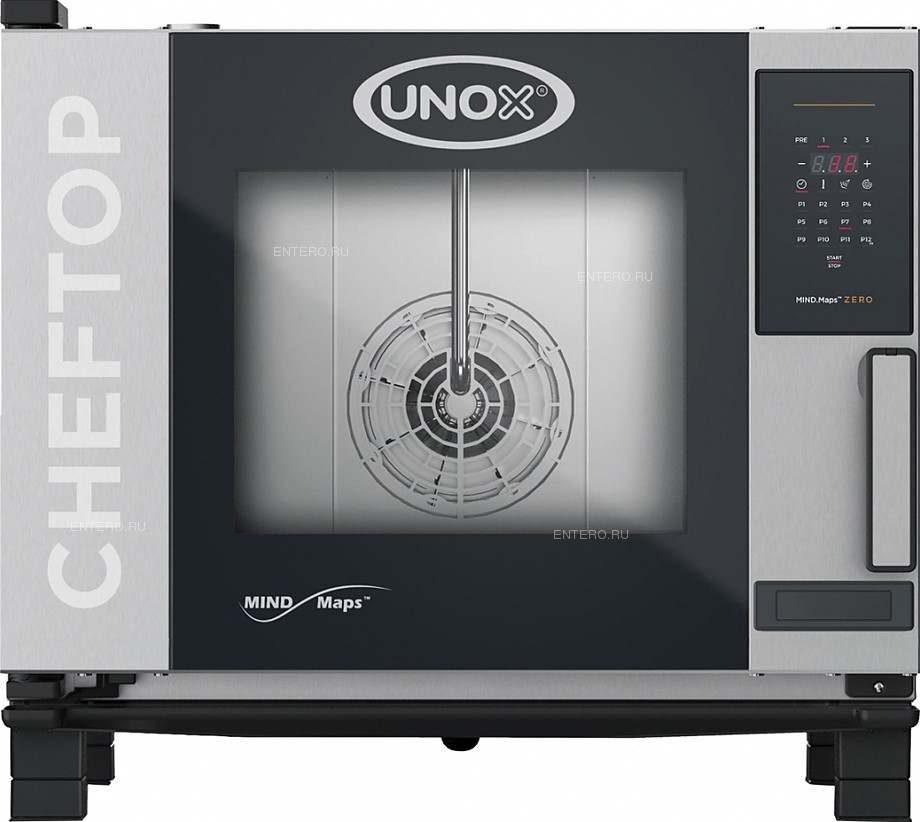 Пароконвектомат UNOX XEVC-0511-EZRM-LP серии CHEFTOP MIND.Maps™ ZERO предназначен для приготовления различных блюд, выпечки хлебобулочных и кондитерских изделий на предприятиях общественного питания и торговли, в пекарнях и кондитерских. Модель оснащена встроенной в дверь светодиодной LED-подсветкой и C-образными с зубчатыми нишами направляющими. Внутреннее открывающееся стекло облегчает чистку и обеспечивает максимальную гигиену. Камера с закругленными углами выполнена из нержавеющей стали AISI 304, направляющие — из профилированной стали, дверной замок — из высокопрочного самосмазывающегося технополимера, внутренний штифт дверной ручки — из углеродного волокна. Оборудование должно быть подключено к сети водоснабжения (вентиль 3/4″). В комплект поставки входят 4 пластиковых держателя, набор для подключения к водопроводной сети (шланг подачи воды, механический фильтр и невозвратный клапан 3/4) и набор «Starter Kit» (8 саморезов, гаечный ключ и наклейка). Листы для выпечки в комплект поставки не входят и приобретаются отдельно.