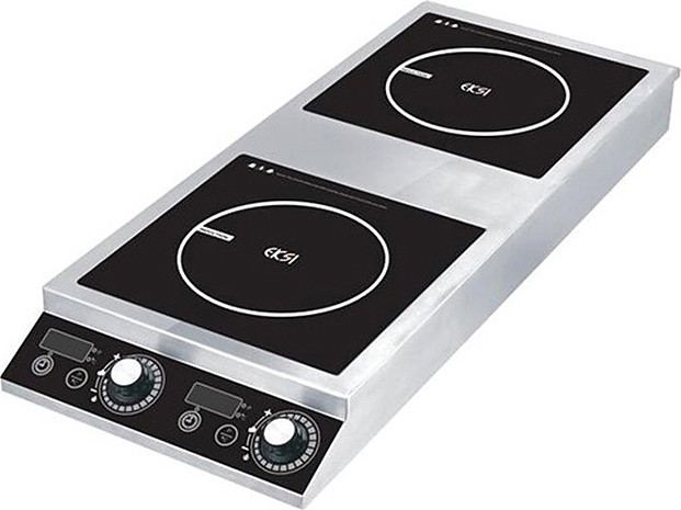 Индукционная плита EKSI IPM 7DV предназначена для приготовления широкого спектра блюд на предприятиях общественного питания и торговли. Принцип работы плиты основан на использовании индуцированных вихревых токов, создаваемых высокочастотным магнитным полем, которые и подогревают посуду с продуктами. Корпус выполнен из нержавеющей стали, рабочая поверхность — из стеклокерамики.