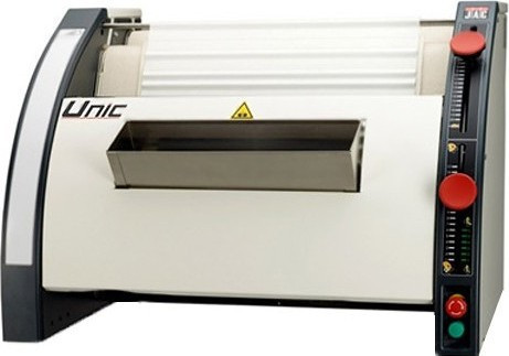 Тестозакаточная машинаJac Unicиспользуется на предприятиях общественного питания и торговли, в пекарнях и кондитерских для формования заготовок для батонообразных изделий и багетов. Модель оснащена 3 раскаточными валиками, эргономичными рычагами регулировки, системой выдвижных кассет для простой замены лент, выдвижной полкой-пеналом, рукоятками для транспортировки и местом для записи настроек, которые стираются сухой тряпкой.